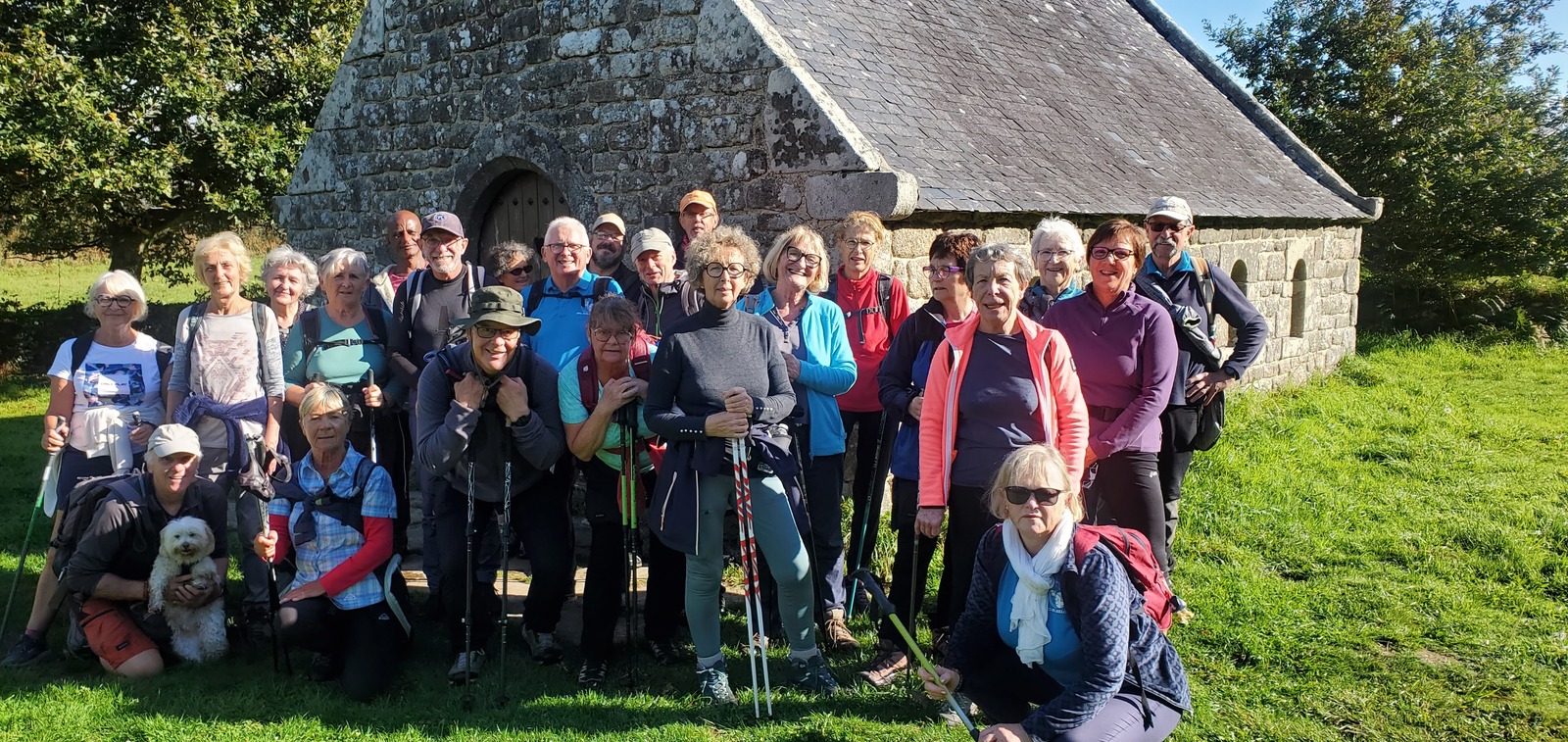 Le circuit du matin de 12 km a permis au groupe d'une vingtaine d'adhérents du club de découvrir le bois du Névet de 224 hectares près de Locronan. Ses sentiers sous les hêtres, chataigniers et chênes, ses sous-bois dans la verdure et les mousses nous ont plongé dans un monde duquel on aurait pu voir surgir des elfes et des trolls. Il faut noter que cette forêt était autrefois un sanctuaire druidique. Nos pas nous ont aussi mené vers un point de vue sur les hauteurs de Locronan où nous avons pu admirer la baie de Douarnenez avec le cap de la Chèvre à l'horizon.